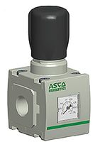 651/652 Series Regulator. A high flow regulator from ASCO ‘s 651/652 series or air preparation equipment. Threaded ports allow this pneumatic regulator to be mounted individually or with other equipment from the 651/652 series. The 651/652 series are a modular air preparation system that is easy to install and can be easily configured to suit various compressed air applications. Features and Benefits. High flow with a wide range of adjustable output pressure ranges. Available with relieving, non-relieving and internal flow check options. Low profile gauge bar/PSI. Optional extended temperature range of -40 °C to +80 °C. Threaded ports allow for individual or modular mounting |
