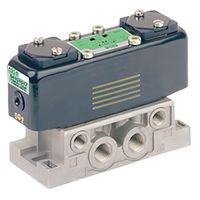 Electro-pneumatically controlled ISO distributors. Range of 5/2 and 5/3 distributors with electro-pneumatically controlled multi-function drawer. Controlled by 3/2 direct control solenoid valves from series 189 and 190 (ordered separately). Fitted using ISO / AFNOR NFE 49085 base or juxtaposable with ISO / VDMA 24345. Available in different sizes (or 3). Drawer position test on size 3 distributors. |
